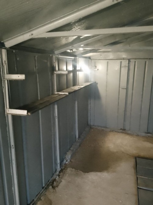 Гараж свежо покрашен в темно серый цвет ворота ,а внутри серим.