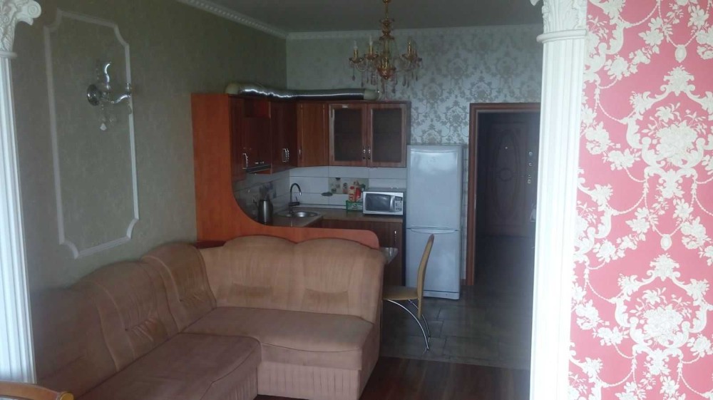 3кімнатна квартира, перебудована у 2кімнатну. Кухня-студія має телевізор, кондіціонер, диван, софу, посудомийну машину, пральну машину, витяжку, духову піч та вихід на балкон. Вікна кухні виходять у двір. Вікна спальні на проспект Миру. В спальні також є кондіціонер та телевізор. Ванна велика, має вуглову ванну та бойлер. Підійде для сімї з 3 людей. Поряд знаходиться бібліотека, магазин, море, кафе, банк та парк. Здається з проживанням і влітку також, без виселення. Деталі за телефоном.