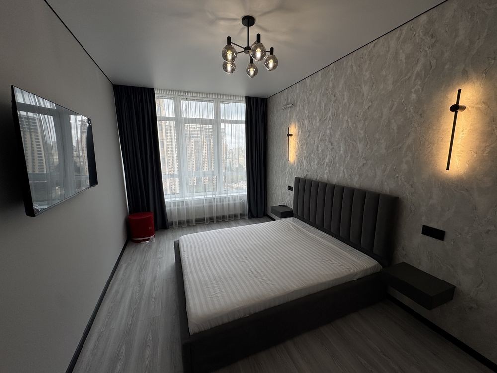 Здам гарну квартиру ЖК Атмосфера, велика однокімнатна квартира, новий якісний ремонт в світлих тонах. Будинок знаходиться в гарному районі Аркадії. Класний комплекс сучасний двір і на останньому поверсі парк . В домі є генератор на випадок вимкнення світла і підземний паркінг.