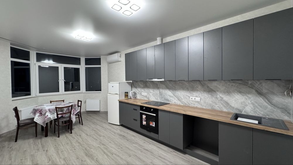 Оренда стильної 1 к кв з кухнею студією в новому будинку ЖК "Файна Таун" в Шевченківському районі, вул. Салютна, 2 Квартира 43 м2 , розташована на четвертому поверсі та складається з передпокою, спальні, великої кухні -студії та санвузла. Вікна квартири виходять в двір. Облаштована всіма необхідними меблями з екологічно чистої деревини та оснащена побутовою технікою: телевізор Samsung Smart 43, кондиціонери в кухні та кімнаті, плита індукційна, вбудований холодильник, духова шафа з функцією мікрохвильової печі, пральна машина з сушаркою. В кухні та ванній кімнаті тепла підлога, високошвидкісний інтернет. ЖК "Файна Таун" це: закрита територія з входом по картці, цілодобова охорона, відеоспостереження, паркінг, підземні контейнери для сміття, зарядні станції для електромобілів та лавки з інтегрованими батареями для підзарядки девайсів, розумне освітлення, яке підлаштовується під час доби та ще багато чого для того, щоб жити з комфортом й ні в чому себе не обмежувати) розповім при перегляді. Зручне транспортне сполучення та розвинута інфраструктура: магазини,спортивні та пішохідні зони ,зона барбекю, ресторани та кафе. Квартира, в якій поєднані комфорт та затишок, шукає своїх порядних орендарів молоду пару або одну людину без дітей та тварин. Перша оренда, квартира вільна.