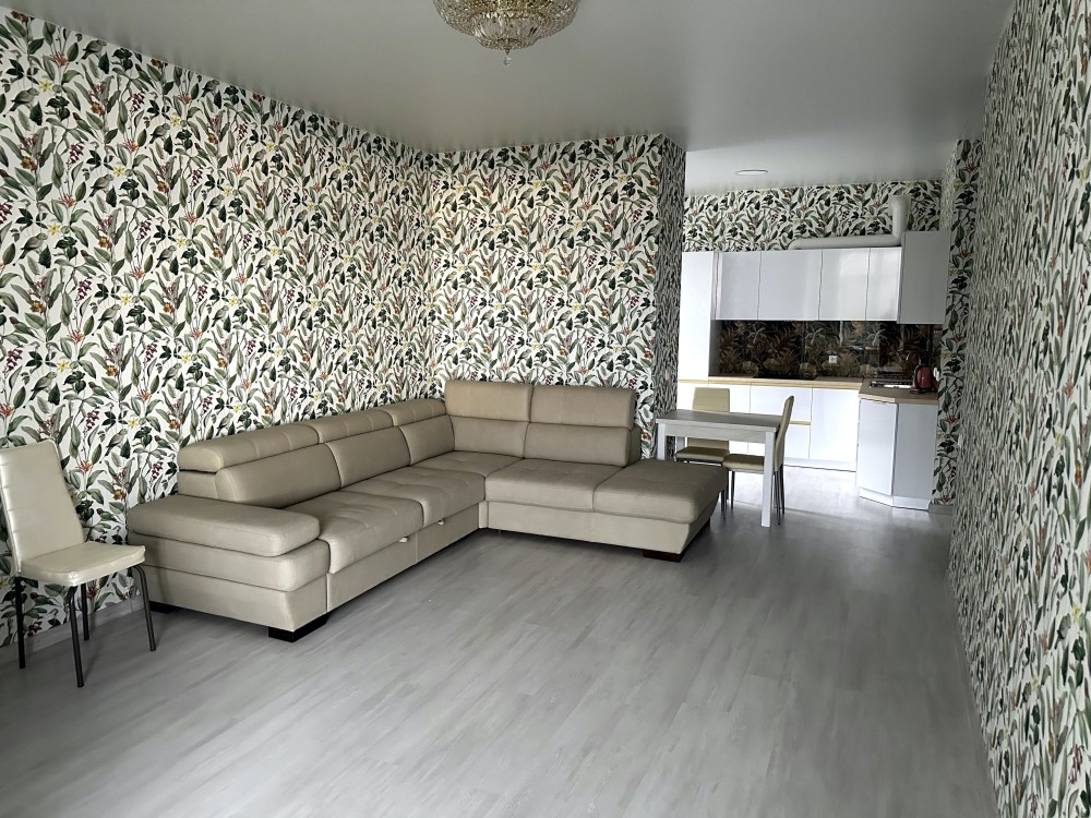 Квартира состоит из спальни с двуспальной кроватью, в прихожей большой шкаф-купе, кухни-гостиной с диваном и видом на море, санузел раздельный. Квартира очень теплая.
