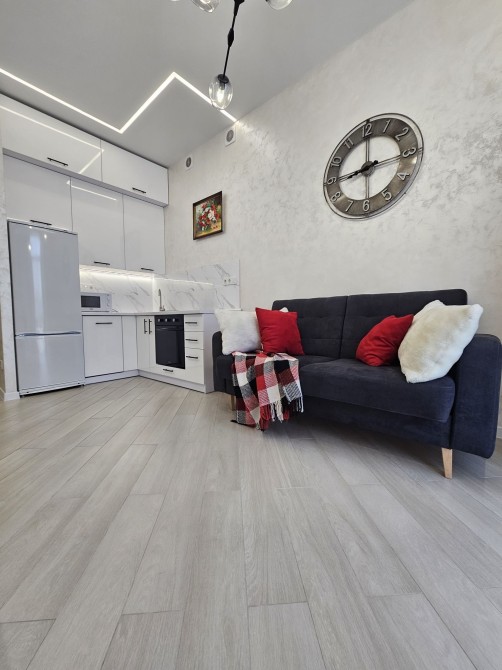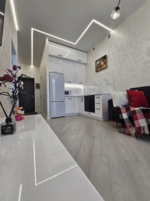 Оренда стильної 1 к кв з кухнею студією в новому будинку ЖК "Файна Таун" в Шевченківському районі, вул. Салютна, 2 Квартира 43 м2 , розташована на четвертому поверсі та складається з передпокою, спальні, великої кухні -студії та санвузла. Вікна квартири виходять в двір. Облаштована всіма необхідними меблями з екологічно чистої деревини та оснащена побутовою технікою: телевізор Samsung Smart 43, кондиціонери в кухні та кімнаті, плита індукційна, вбудований холодильник, духова шафа з функцією мікрохвильової печі, пральна машина з сушаркою. В кухні та ванній кімнаті тепла підлога, високошвидкісний інтернет. ЖК "Файна Таун" це: закрита територія з входом по картці, цілодобова охорона, відеоспостереження, паркінг, підземні контейнери для сміття, зарядні станції для електромобілів та лавки з інтегрованими батареями для підзарядки девайсів, розумне освітлення, яке підлаштовується під час доби та ще багато чого для того, щоб жити з комфортом й ні в чому себе не обмежувати) розповім при перегляді. Зручне транспортне сполучення та розвинута інфраструктура: магазини,спортивні та пішохідні зони ,зона барбекю, ресторани та кафе. Квартира, в якій поєднані комфорт та затишок, шукає своїх порядних орендарів молоду пару або одну людину без дітей та тварин. Перша оренда, квартира вільна.