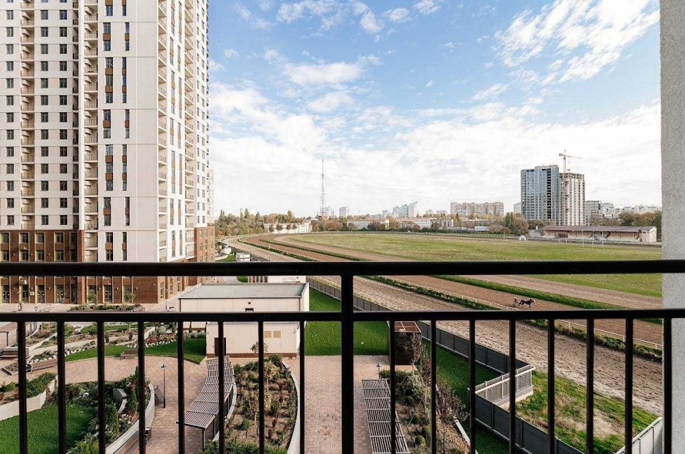 З кухні є вихід на балкон з видом на зелену територію двору, а також на іподром.