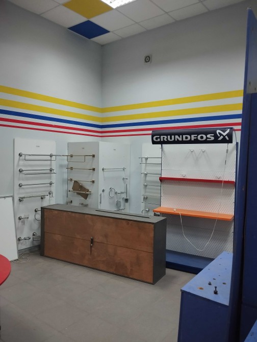 Есть мебель в торговом зале и кабинете,и стеллажи в подвальном помещении.