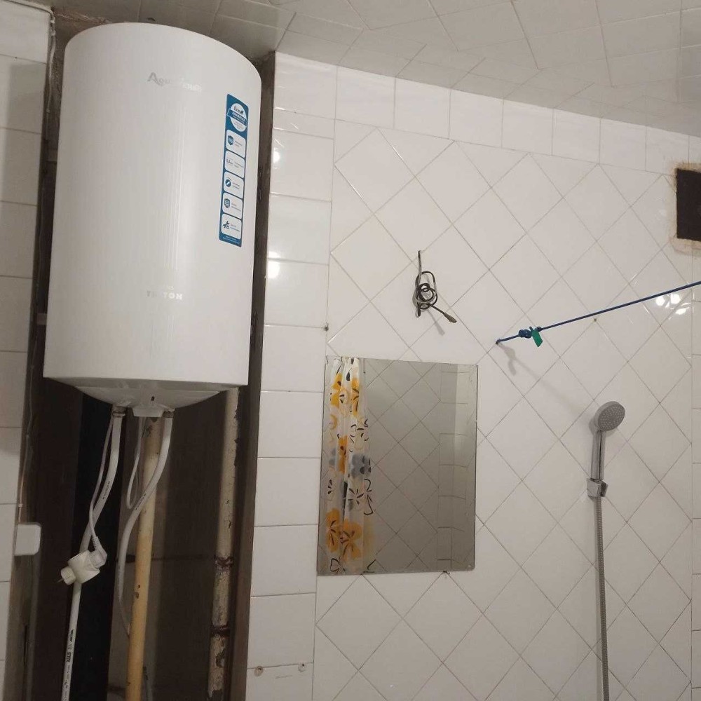 плиткой.Есть бойлер,газовая плита с духовкой.Открытый балкон,бронированные двери.