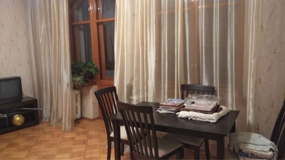 4 этаж. Есть большой балкон. Зеленый двор с детской площадкой. А квартире есть вся необходимая мебель и техника. Хорошая кухня. Есть кондиционер, стиральная машина, пылесос…