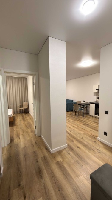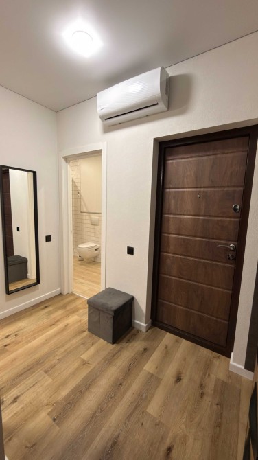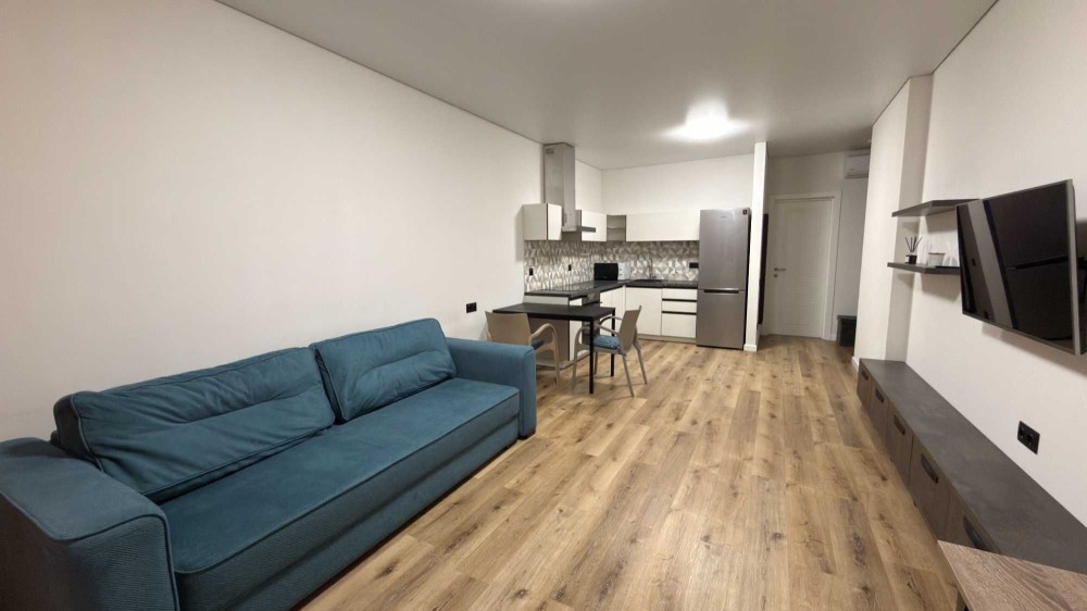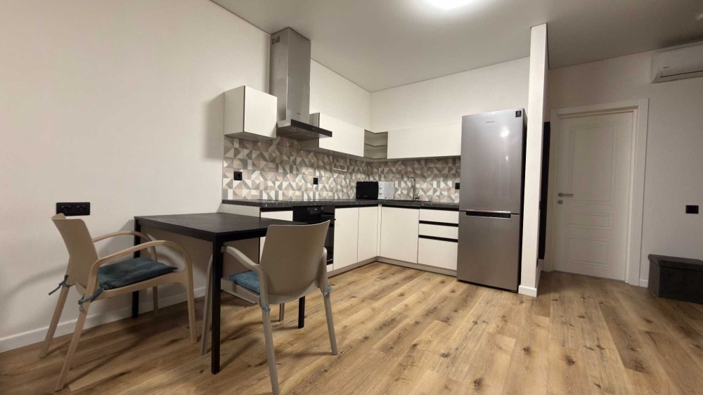 • Укомплектована всем самым необходимым для комфортного проживания: встроенная кухня, холодильник, варочная панель и духовой шкаф, кондиционер, TV-smart, микроволновка, пылесос, утюг и другое.
