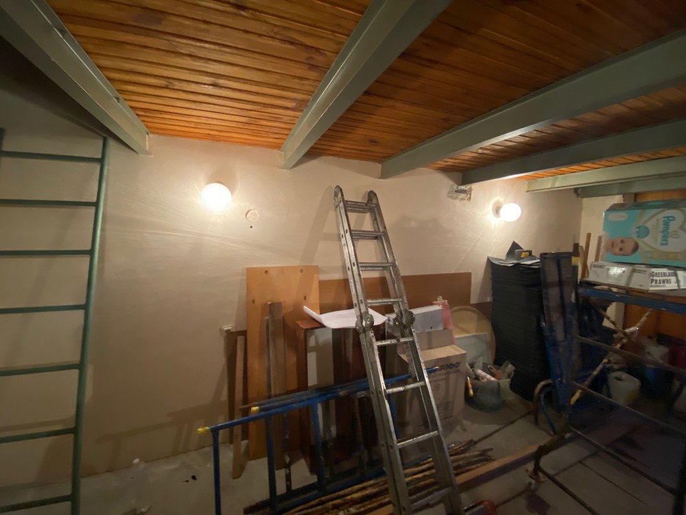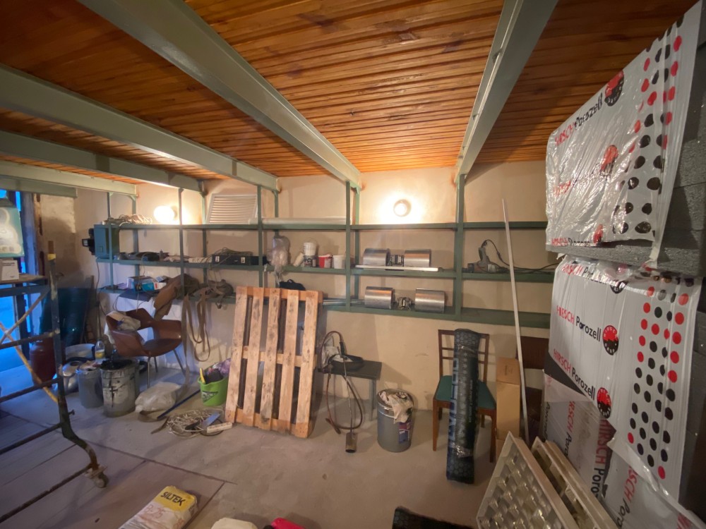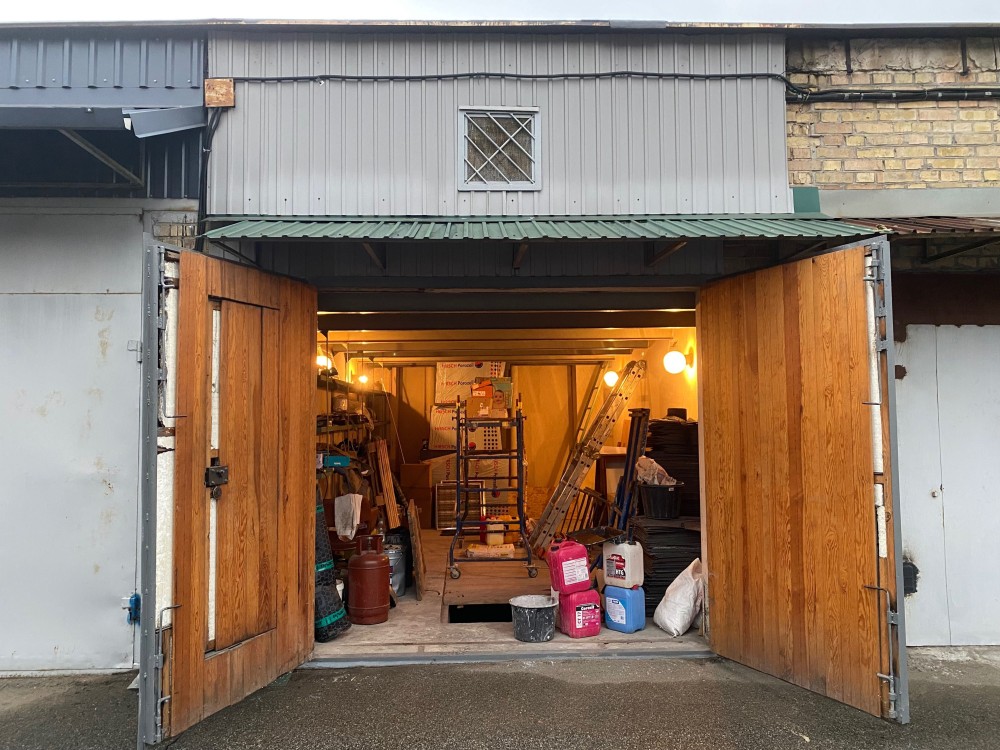Гараж триповерховий: є стелажі для зберігання при в’їзді та у підвалі, утеплені ворота.