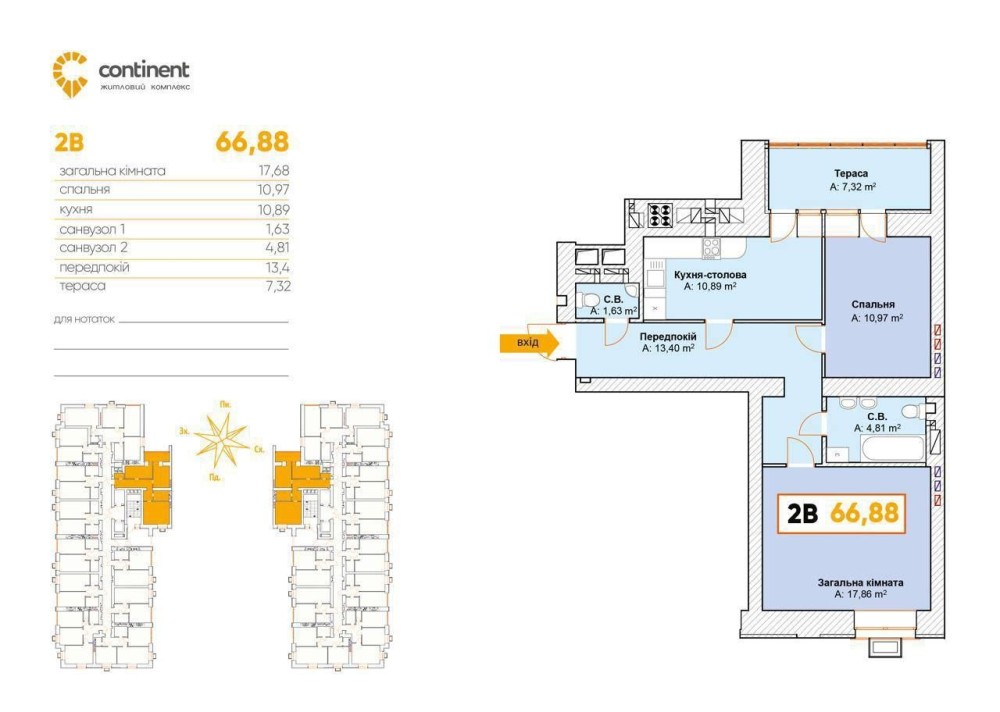 • Общая площадь 68 м2