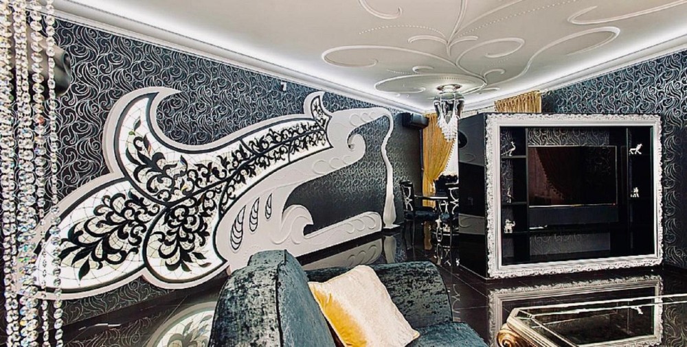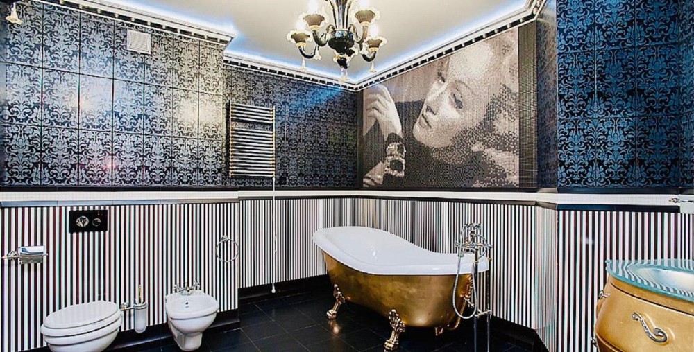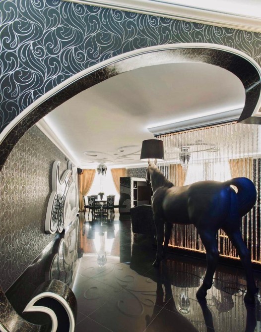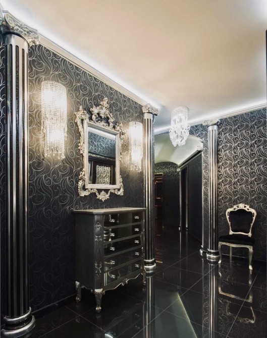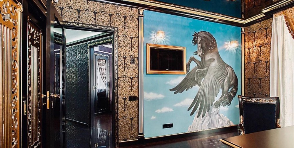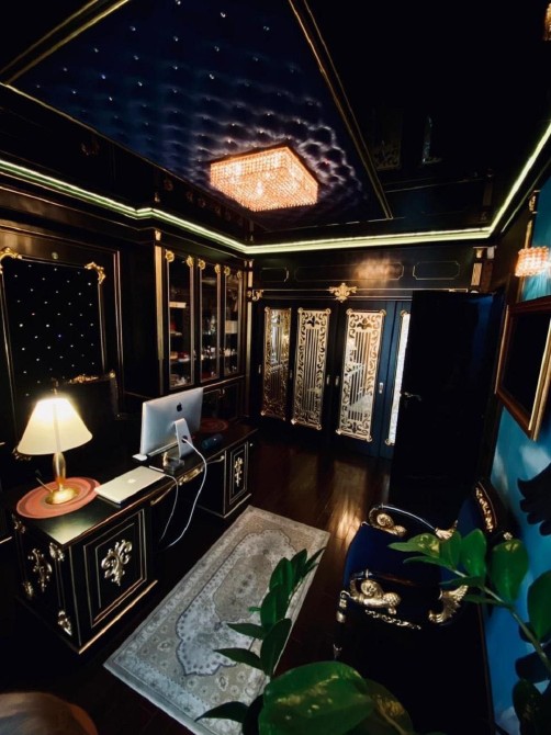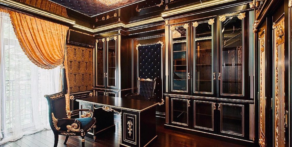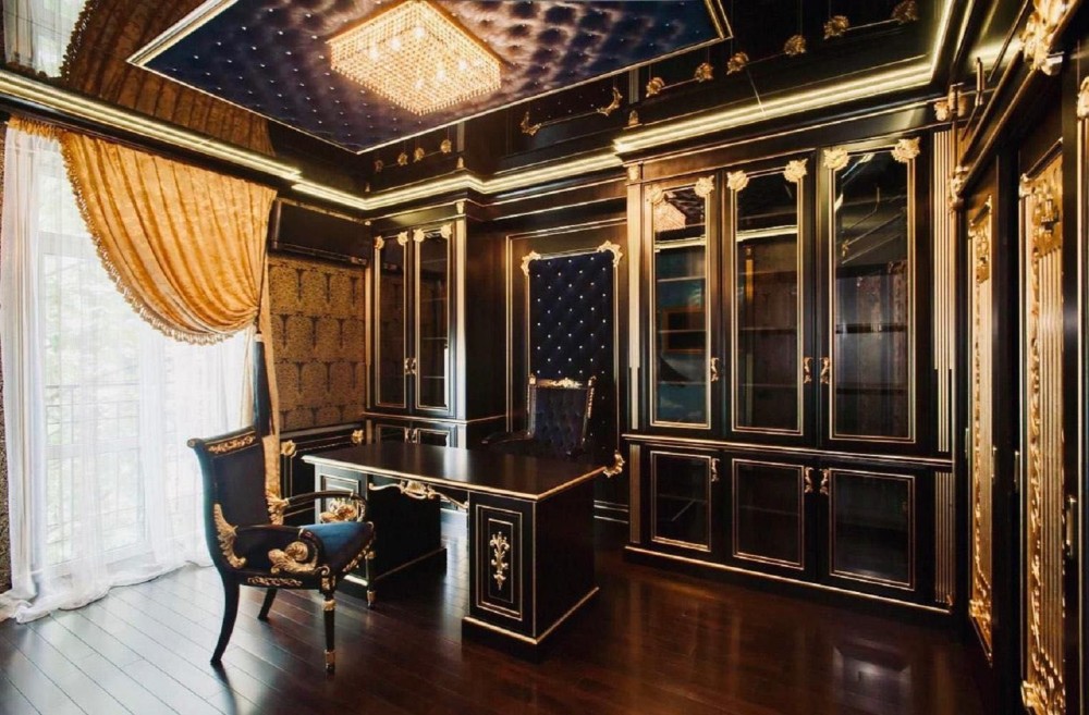 Проєкт відомого дизайнера! Декоративні елементи ручної роботи, меблі, підлога та стіни оброблені золотом і сріблом (поталь), шпалери та вітражі ручної роботи, меблі "Pomingo", "Parado", "Foglia Argento Antico Caldo", "Ceppi", "Tiffany", люстри "Beby Group Swarovsky cristal Diamond", домашній кінотеатр "Harman Cordon", у ванній кімнаті меблі "Eurolengo", "Creazioni", дзеркало "Bianchi". Побутова техніка "Miele", смарт-телевiзори "Samsung".