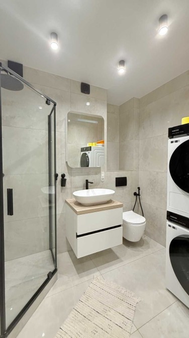 - Суміжний санвузол з душовою, вже встановлені пральна машинка та сушильна машинка.