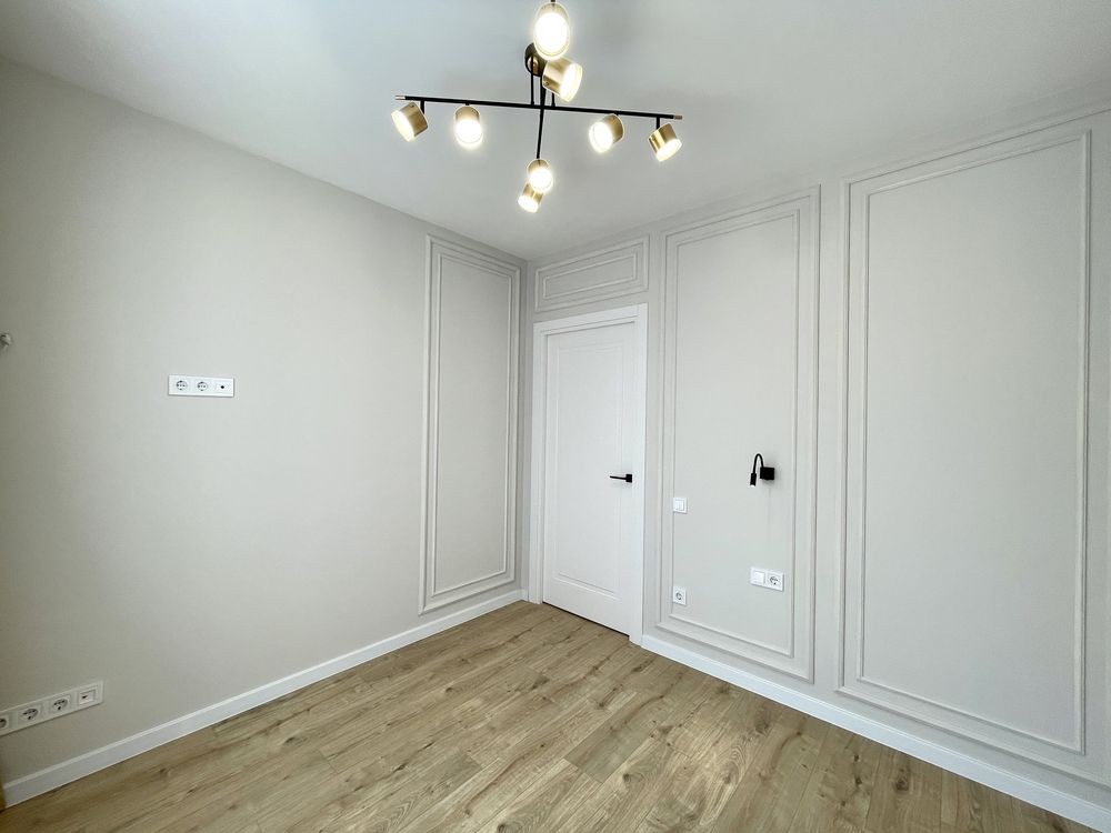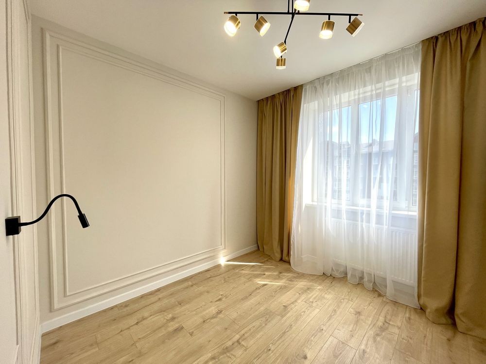 Квартира з функціональним плануванням: простора кухня студія, дві окремі кімнати ( спальня із гардеробною, та дитяча кімната), суміжний санвузол з ванною та велика вхідна зона.