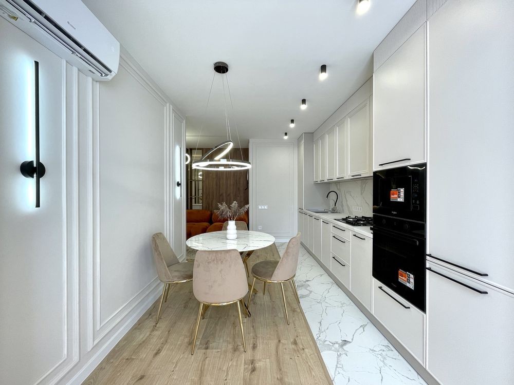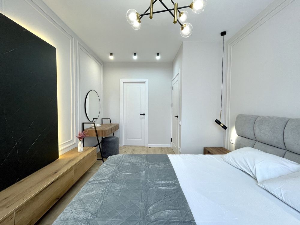 Зроблений сучасний дизайнерський ремонт, використовувалися дорогі матеріали. Квартира повністю укомплектована меблями та технікою, а саме: