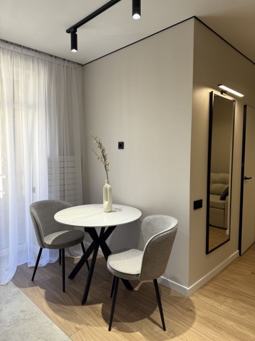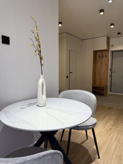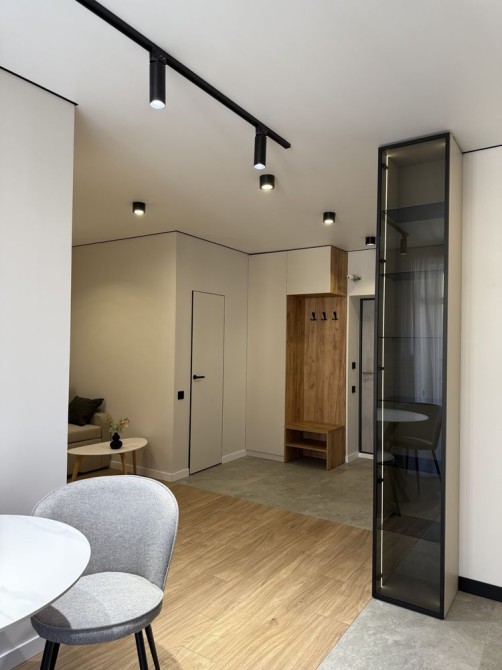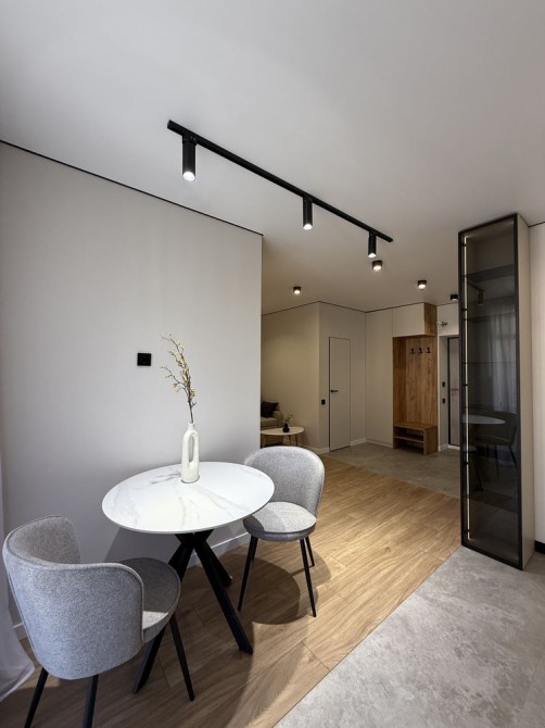 Квартира має максимально продумане та функціональне планування. Кухня-вітальня із окремою зоною відпочинку, окрема гардеробна кімната, простора спальня.