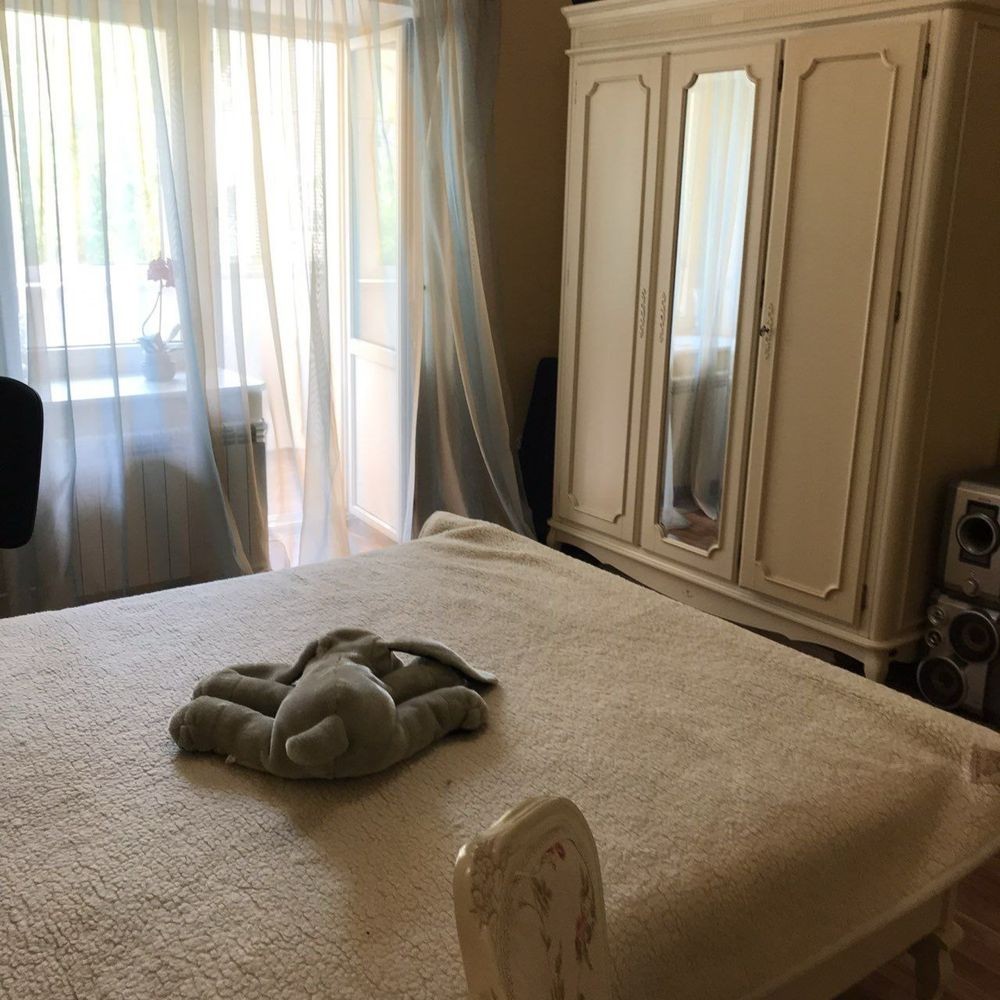 Спальня в средиземноморськом стилі , ліжко двоспальне з ортопедичним матрасом, італійські білі меблі, є балкон .Кімната простора 20 кВ.м на першому високому поверсі в 12 поверховому кирпичному будинку , розташований в парковій зеленій зоні з інфраструктурою . На вікнах жалюзі в кімнаті. Вхід окремий. Великий коридор . Інтернет .