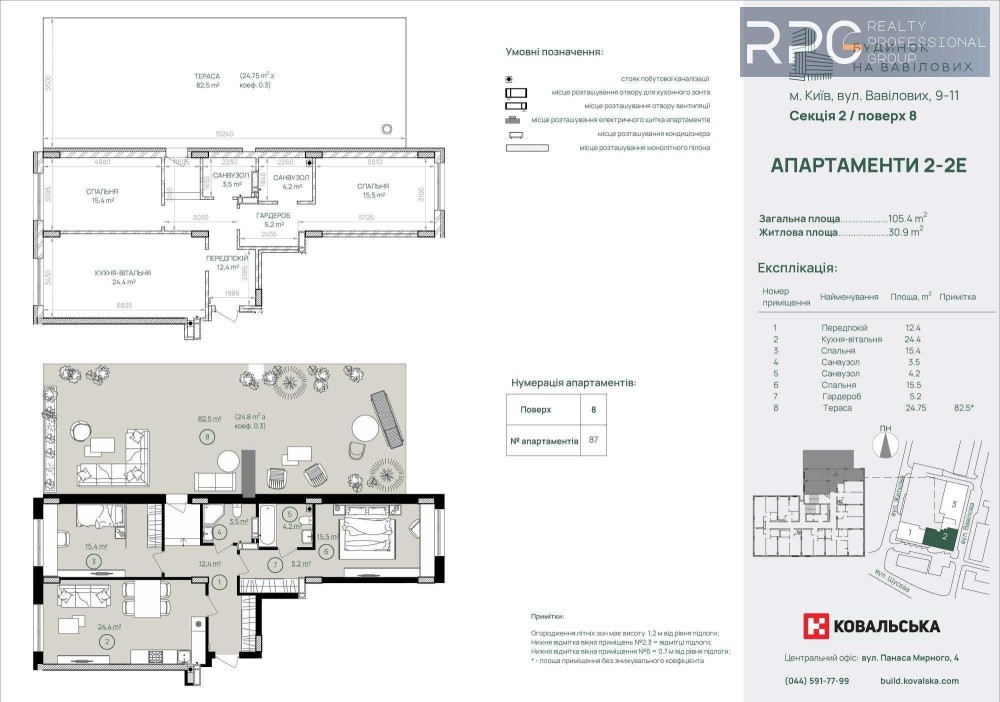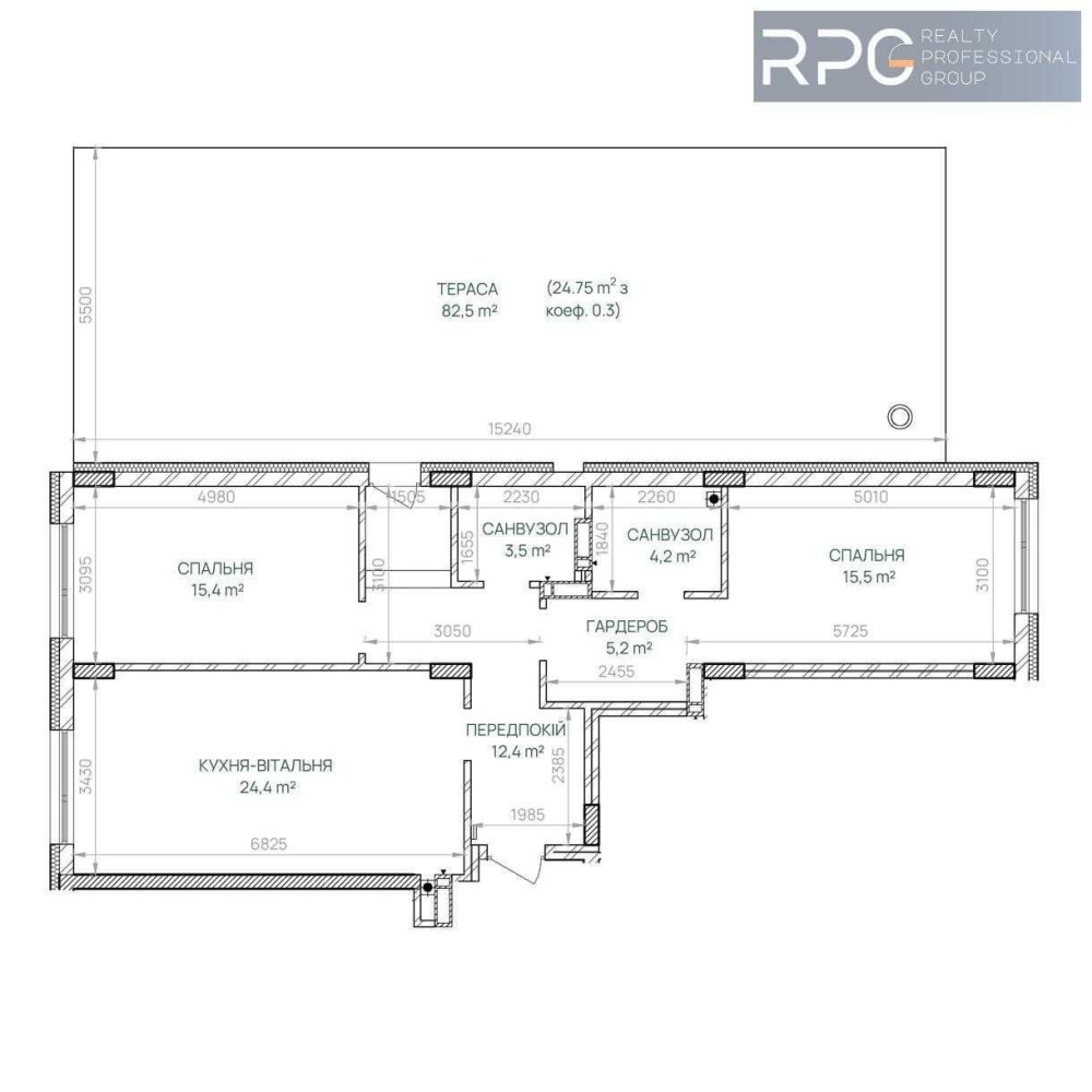 - Тераса — 82,5 м² (коефіцієнт 0,3)