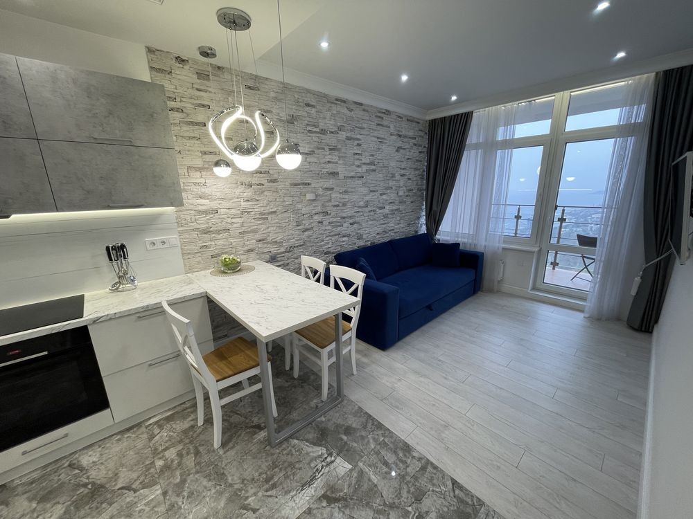 Шикарная 1 комнатная квартира в ЖК 45 Жемчужина, ул. Каманина, Аркадия, 5 минут пешком до моря. В квартире в е удобства, 2 жк тв, 2 кондиционера, посудомоечная машина, хорошая мебель.