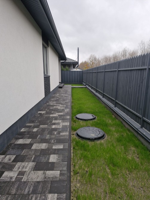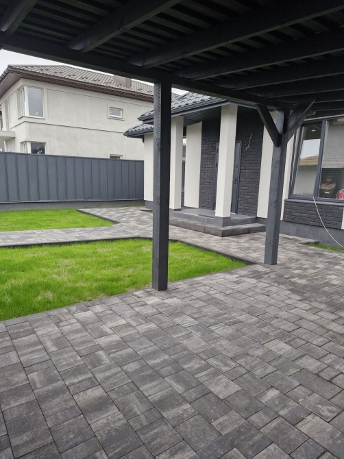Газон, бруківка, зовнішнє освітлення.