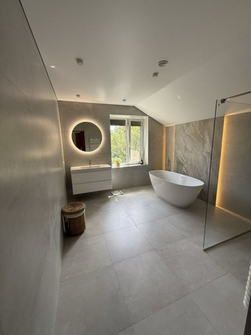 Дом утеплён, установлен тепловой насос 7,5 кВт, тёплый пол.