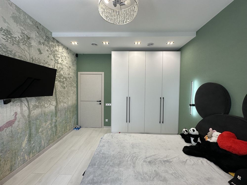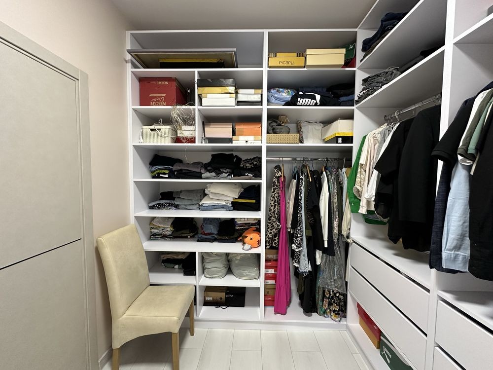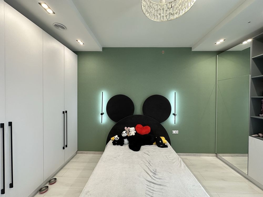 Поделен на два крыла-левое для родителей с мастер спальней и большой гардеробной.
