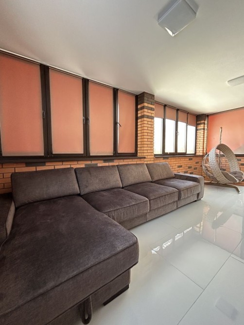 Тераса в будинку засклена та вмебльована. Є тепла підлога для комфортного відпочинку взимку та встановлено кондиціонер для літа.