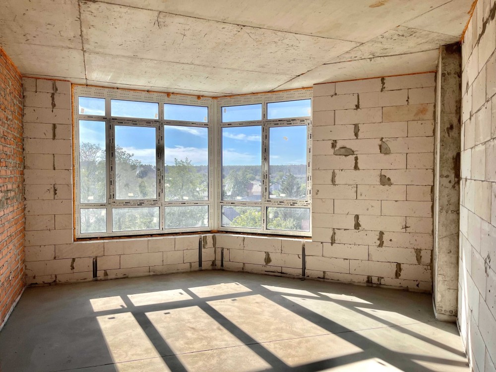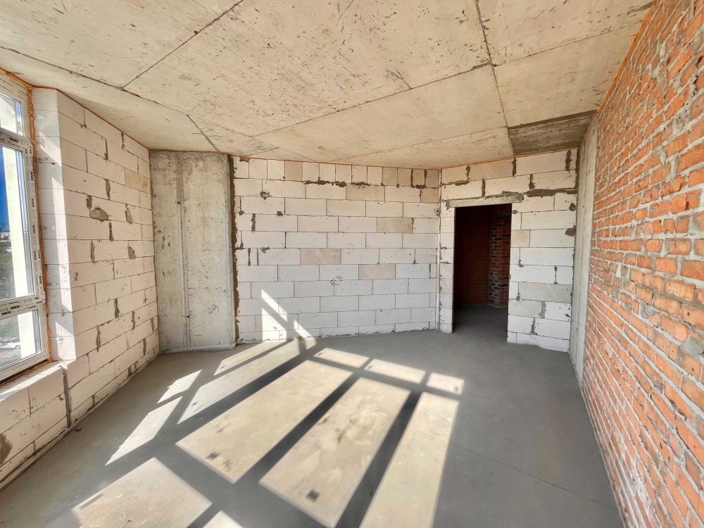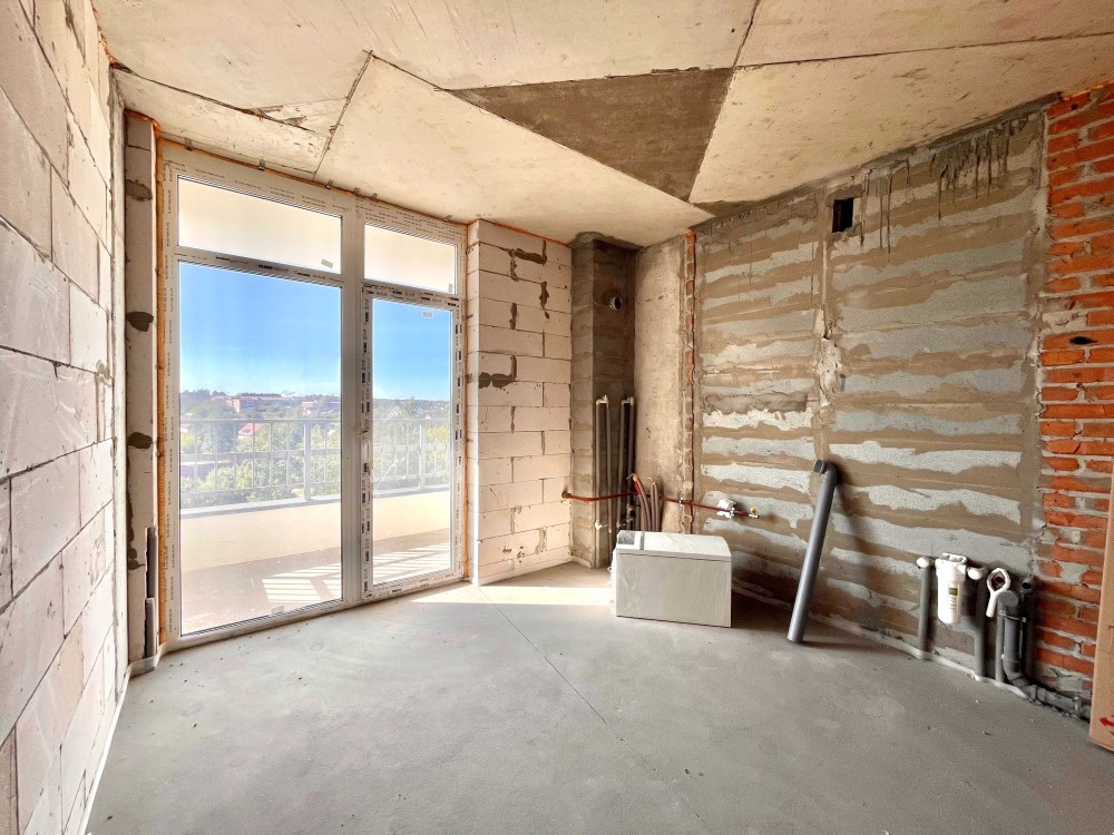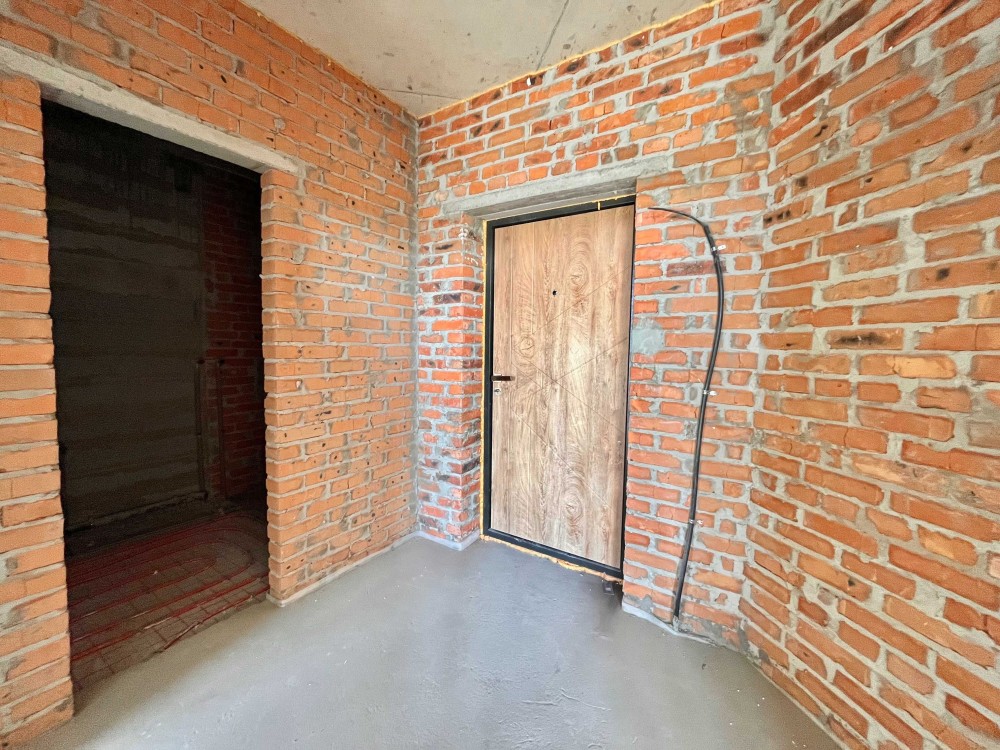 У квартирі виконана стяжка підлоги, розведена тепла підлога по всій квартирі, підведені труби під сантехніку та радіатори