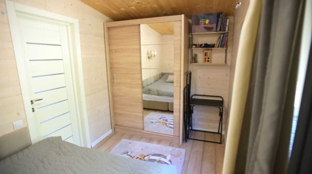 Загальна площа будинку 45 кв.м.. Повністю мебльований. Оснащений елітною європейською технікою, підігрівом підлоги, каміном та просторою терасою. Має вітальню з вбудованою кухнею та 2 окремими кімнатами (спальнями).