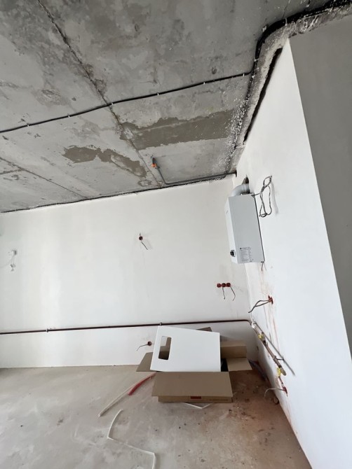 Є стяжка, розведена електрика, штукатурка.