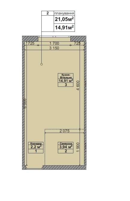 • Общая площадь 21.05 м2