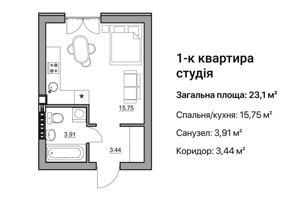 • Общая площадь 23 м2