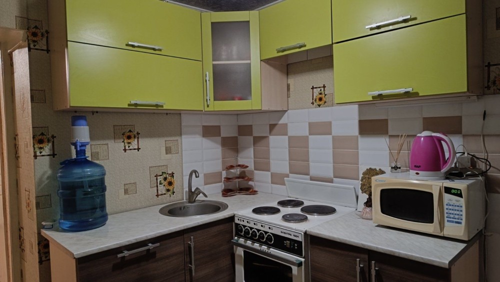 Квартира расположена в доме напротив Свято-Тихвинского женского монастыря,укомплектована необходимой техникой и мебелью,большой зал с нишей(где отделена комната для ребенка),электроотопление (электропанели),электроплита,бойлер.Застекленная лоджия 10м.Рядом прод рынок,АТБ,Варус,2 школы,детсады,остановка транспорта.