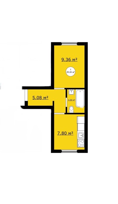 • Общая площадь 25.3 м2