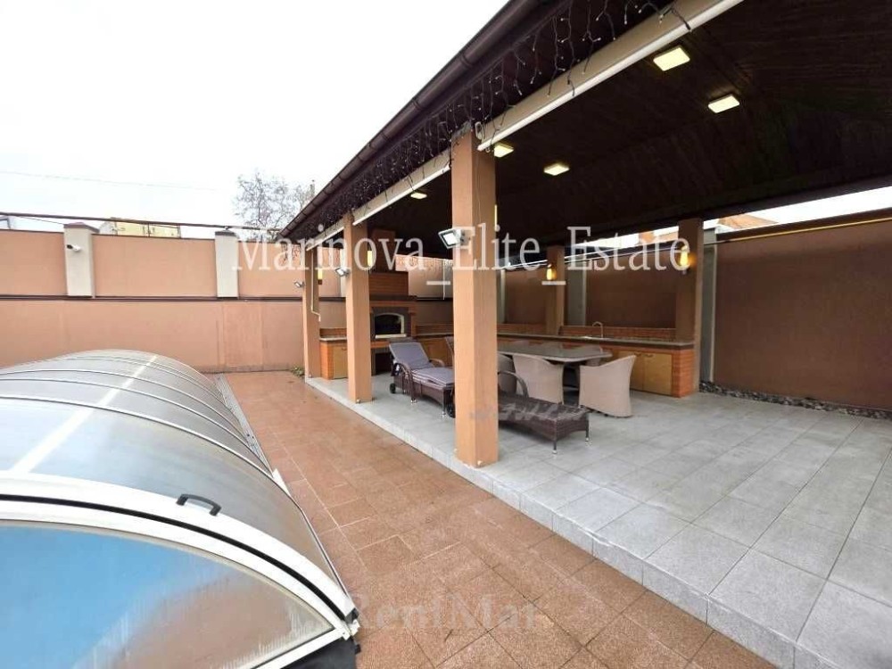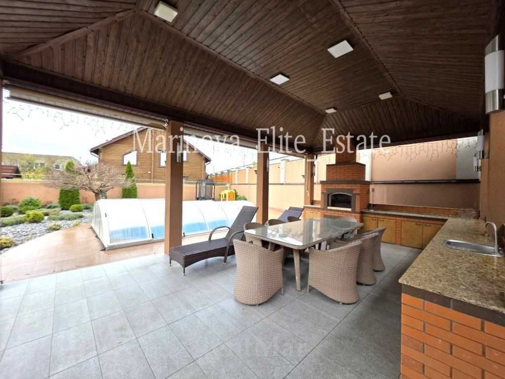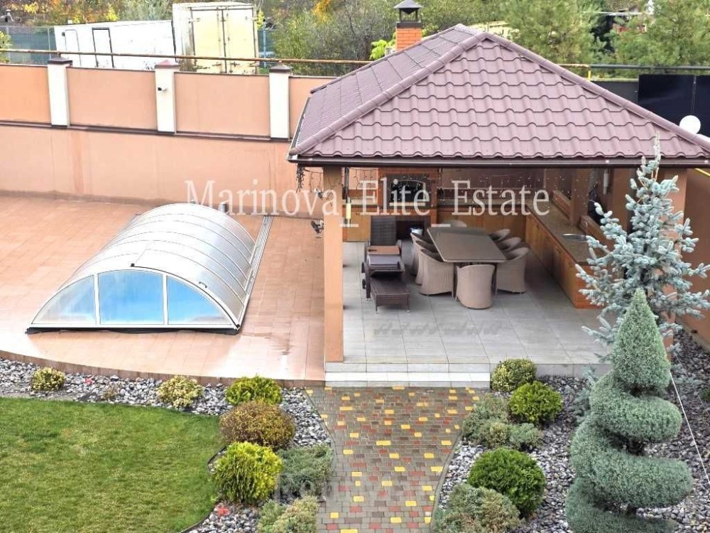 Прекрасная зона BBQ с капитальной беседкой, бассейн (3х5 м), участок с ландшафтным дизайном, автоматический капельный полив, детская площадка.