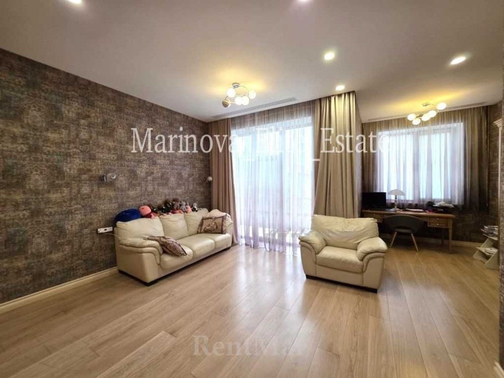 Полы – керамическая плитка. Сантехника австрийской фирмы «Laufen», итальянская мебель. Есть видеонаблюдение. Сигнализация.