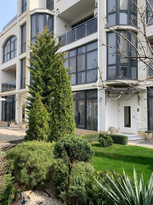09104 Современный новый дом на Большом Фонтане. Таунхаус, площадь 285 кв.м., просторная кухня-студия 68 кв.м., две спальни, два кабинета, три санузла, две гардеробные, лоджия, терраса, тёплый гараж, зона барбекю. Свежий стильный ремонт 2025 года, итальянская мебель. Кухонная техника. Госакт на землю. 285.000$