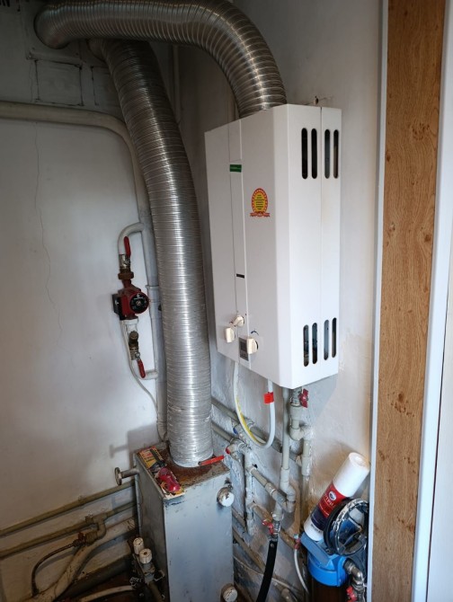 Котельная с одноконтурным газовым котлом и колонкой.