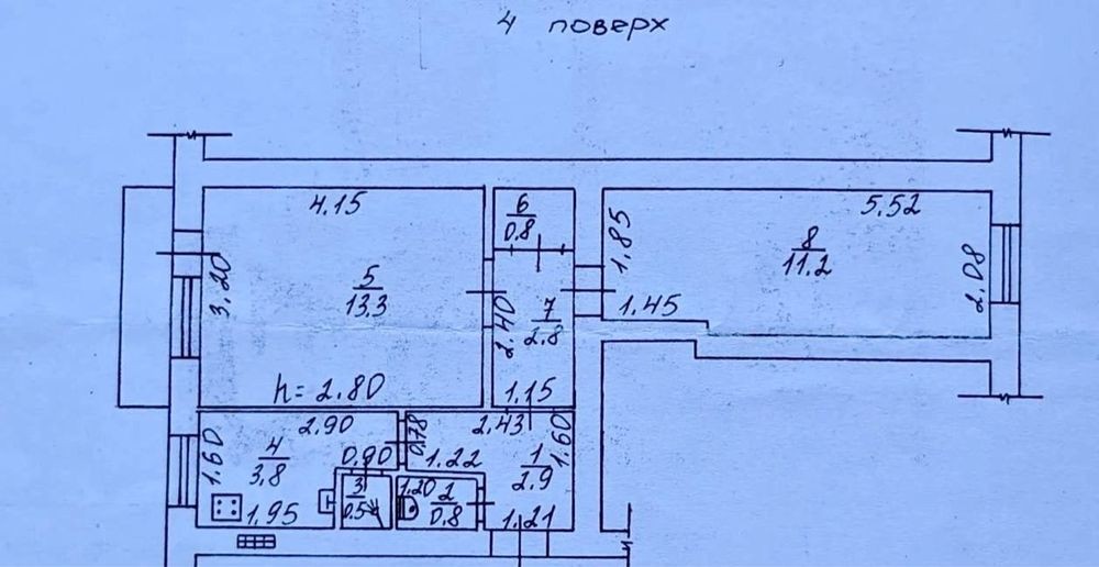 Высокие потолки - 2,8, ровные стены.