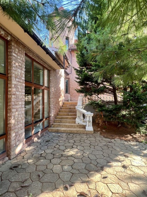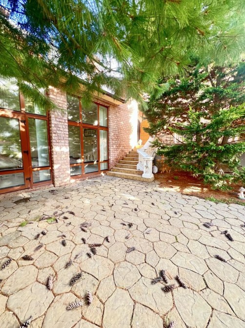 •Ухоженный, мощёный двор с декоративными и хвойными насаждениями, зоной отдыха у бассейна и вольером для собак.