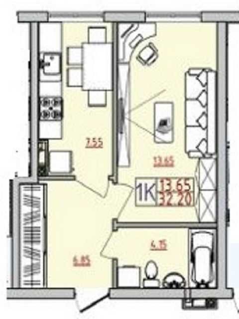 • Общая площадь 32.2 м2