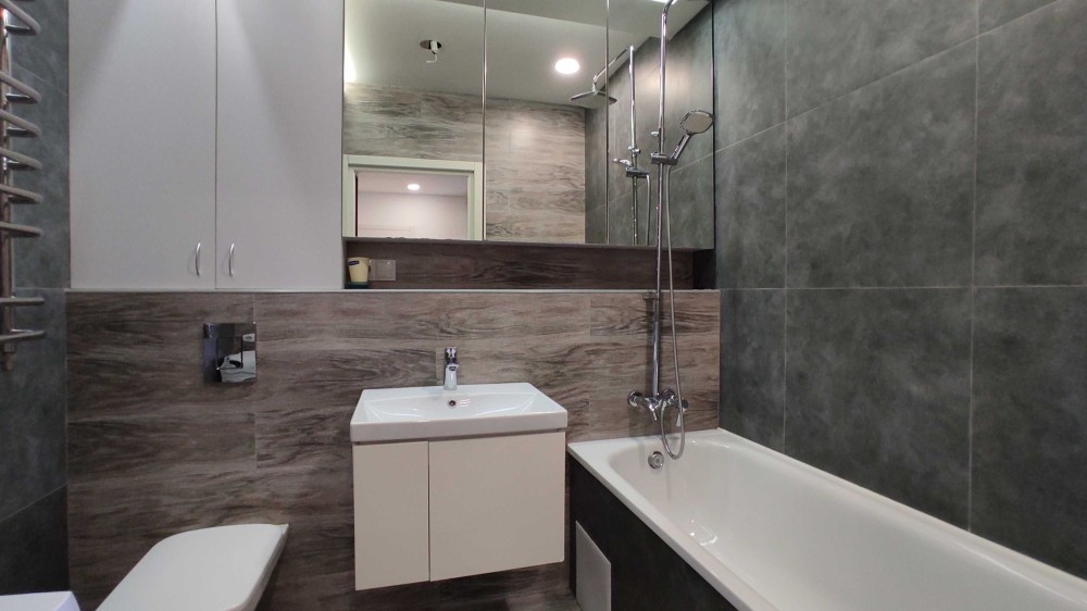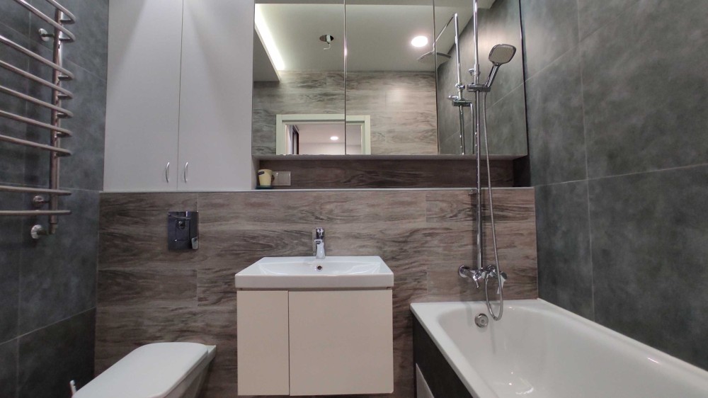 Встроенные шкафы-купе, индивидуальное газовое отопление, теплые керамогранитные полы.
