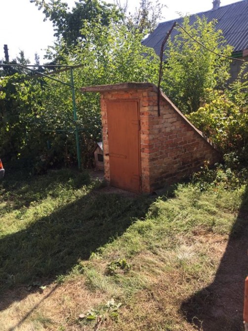 Во дворе есть погреб - 2000г. постройки, много плодовых молодых деревьев, арка под виноград. Огорода - 5 соток, двора - 17 соток.