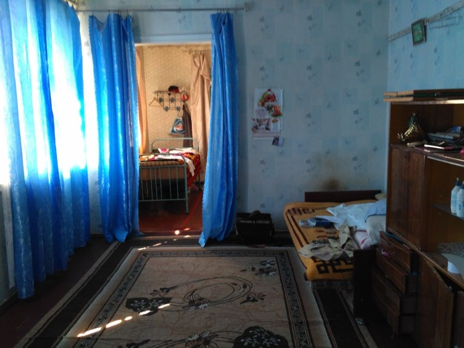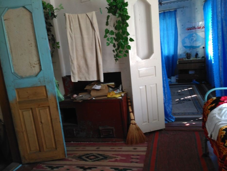 Дом (12х8) ПОД РЕМОНТ с летней кухней. Дом построен в 1985-1990 гг. Стены: саманные (40 см) + красный кирпич (облицовка). Половина дома - жилая, другая половина - под ремонт (саманные стены и пол). Высота потолков - 3,20м, В доме жилая часть: кухня с плитой (4х4м), зал (4х5м), коридор (4х3м); нежилая часть - спальня детская (3х2м), комната (3х4м) и большая спальня (3х5м).