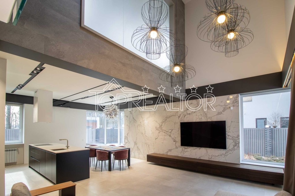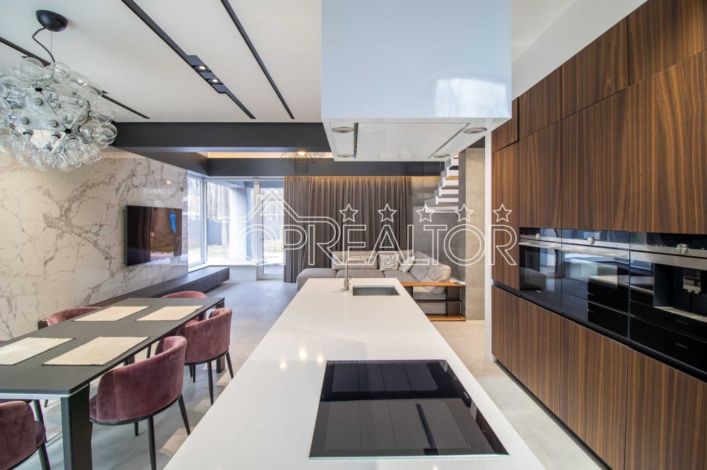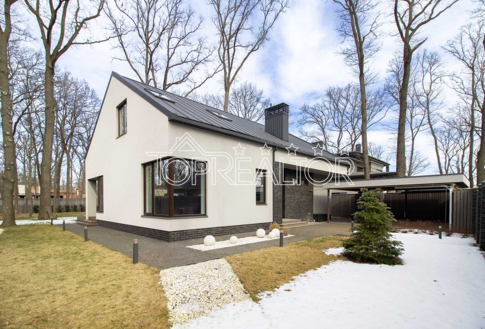 Продам дом в посёлке "Форест" в скандинавском стиле с полным НОВЫМ ремонтом и озеленением. Общая площадь дома 218 кв.м, на первом этаже расположена просторная кухня-студия со вторым светом, гостевой санузел, хозяйская спальня со своей гардеробной и санузлом, кабинет и котельная. Из гостиной есть выход на террасу. Дом полностью укомплектован стильной мебелью и премиальной бытовой техникой. Вся мебель и предметы интерьера приобретались в соответствии с дизайн-проектом. На втором этаже находятся две спальни со своими гардеробными и детский санузел. Дом построен из пеноблока, утеплённого базальтовой ватой 100 мм, внутренние перегородки из красного кирпича. Крыша- фирменная оцинкованная фальц-кровля. Окна- качественные термосберегающие 3-слойные стеклопакеты и 5-камерный МП-профиль. На участке 12 соток расположен крытый паркинг на 2 автомобиля, высажены декоративные кустарники, сделано профессиональное озеленение с автополивом. Дом полностью готов к заселению. Цена значительно дешевле довоенной. Торопитесь сделать выгодное приобретение!