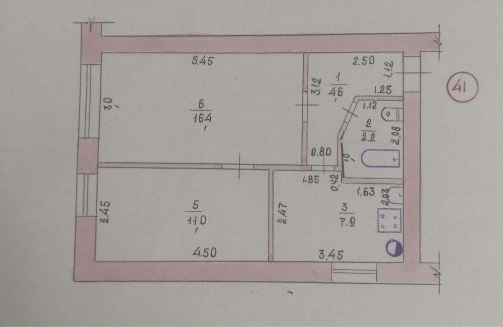 • Общая площадь 43 м2