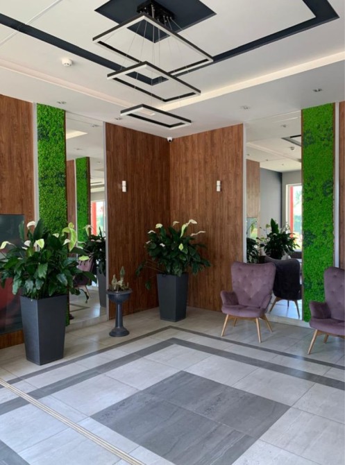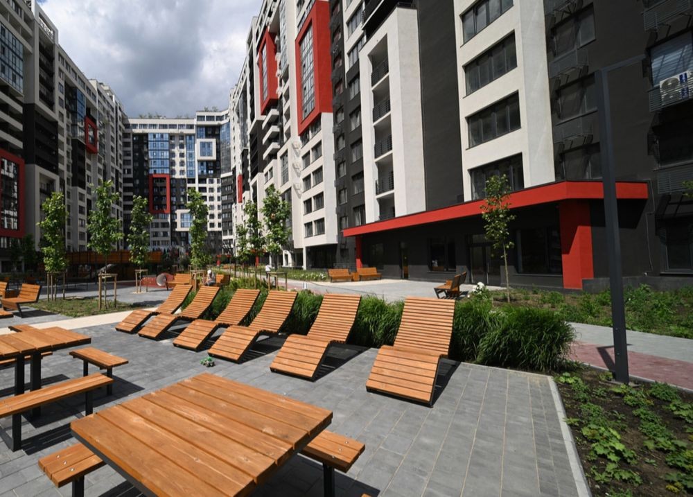 Территория комплекса благоустроена: зоны отдыха, зелёные насаждения, прогулочные аллеи. Комплекс находится под круглосуточной охраной и видеонаблюдением, что обеспечивает комфорт и безопасность.