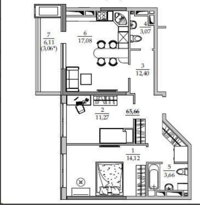 • Общая площадь 66 м2