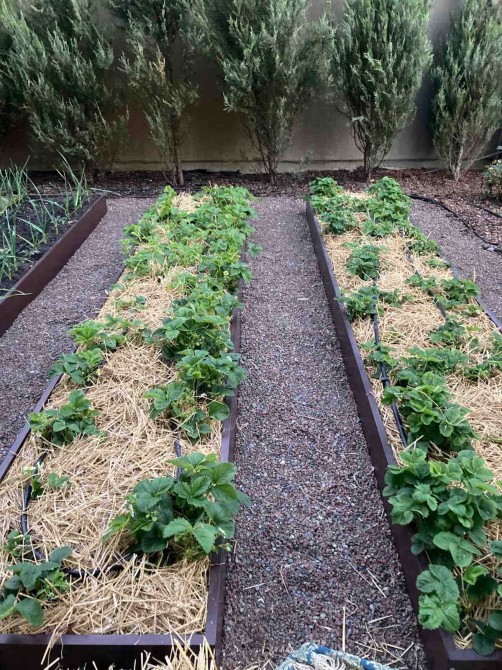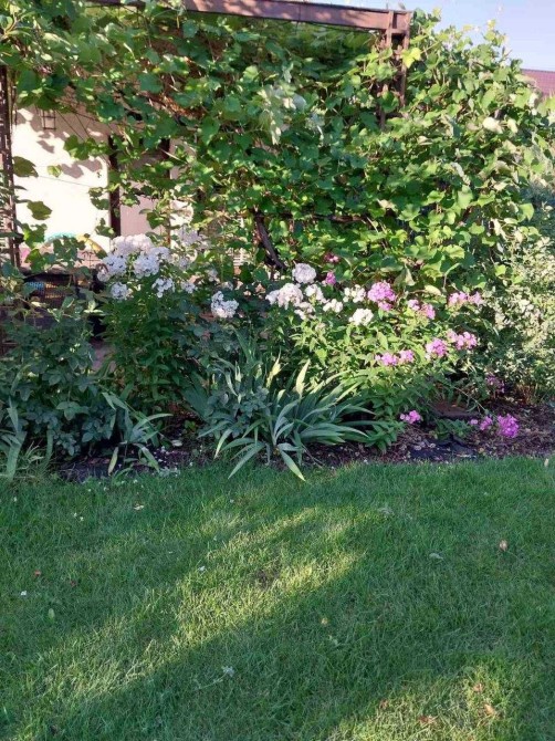 • Сад з полуницею, малиною, лохиною, виноградом, квітами