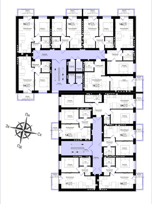 • Общая площадь 40.9 м2