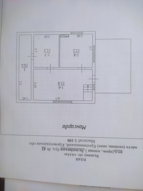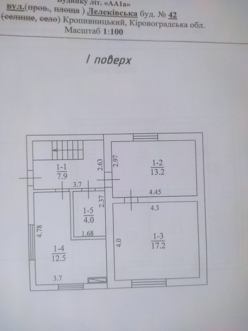 1 поверх: коридор, кухня, санвузол, 2 кімнати