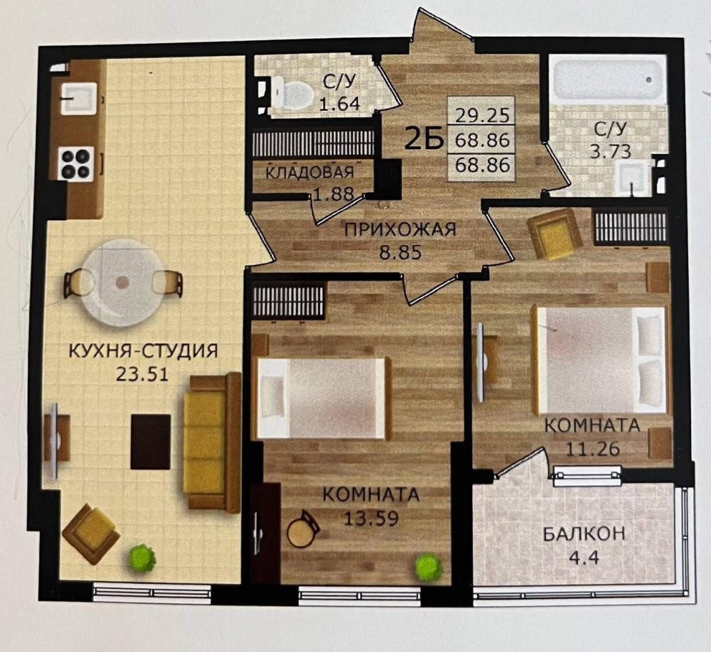 • Общая площадь 70 м2